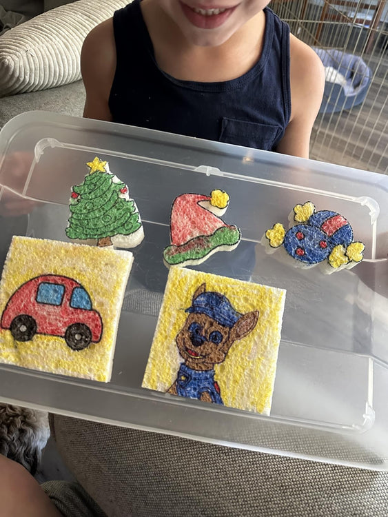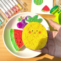 Cada kit viene con 12 plumones de colores, 10 esponjas mágicas 3D, un mini atril de dibujo, 3 lápices de agua y varios accesorios decorativos para que los niños puedan crear y exhibir sus obras. 🎨✨